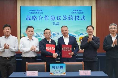 2025年9月19日,宁德时代与西藏林芝市米林市人民政府正式签署战略合作协议。双方将围绕“新能源项目配储、水电产业配套、零碳产业”等领域达成深度合作,积极响应国家“双碳”目标,打造高原清洁能源示范标杆。 米林市委副书记、常务副市长尹建华与宁德时代华南区管理总经理丁爱军代表双方签约。米林市委书记颜世辉,米林市委常务副书记、常务副市长刘
