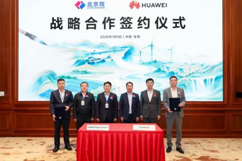 2026年1月5日,中国电建集团北京勘测设计研究院有限公司(下称“中国电建北京院”)与华为技术有限公司(下称“华为”)在东莞签署战略合作协议,中国电建北京院董事长朱国金,华为数字能源全球销售部总裁王新党出席活动并见证签约。 根据协议,双方将秉承平等尊重、开放公平、优势互补、共同发展的原则,持续加强在新能源项目建设、数字化转型、国内外