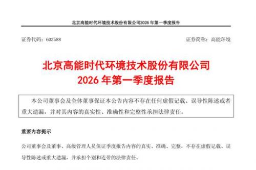 近日,北京高能时代环境技术股份有限公司(简称:高能环境)发布《2026年第一季度报告》。报告期内,高能环境营收同比增长50.91%至49.92亿元,净利润同比增长168.40%至6.03亿元,扣非后净利润同比增长171.07%至5.52亿元,经营活动产生的现金流量净额为-7.58亿元,上年同期经营活动产生的现金流量净额为2.62亿元。 图源:高能环境公告 于业绩大幅增长