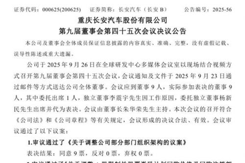 重庆长安汽车股份有限公司(简称:长安汽车)于2025年9月26日召开第九届董事会第四十五次会议,审议通过了《关于设立海外子公司的议案》、《关于长安汽车投资(深圳)有限公司设立飞行汽车合资公司的议案》等。接下来,长安汽车将设立海外子公司以及飞行汽车合资公司。 9月23日,长安汽车曾在投资者互动平台表示,公司将持续打造新技术,守护用户新安全,加快布局人形机器人、飞行汽车等未来新兴产业