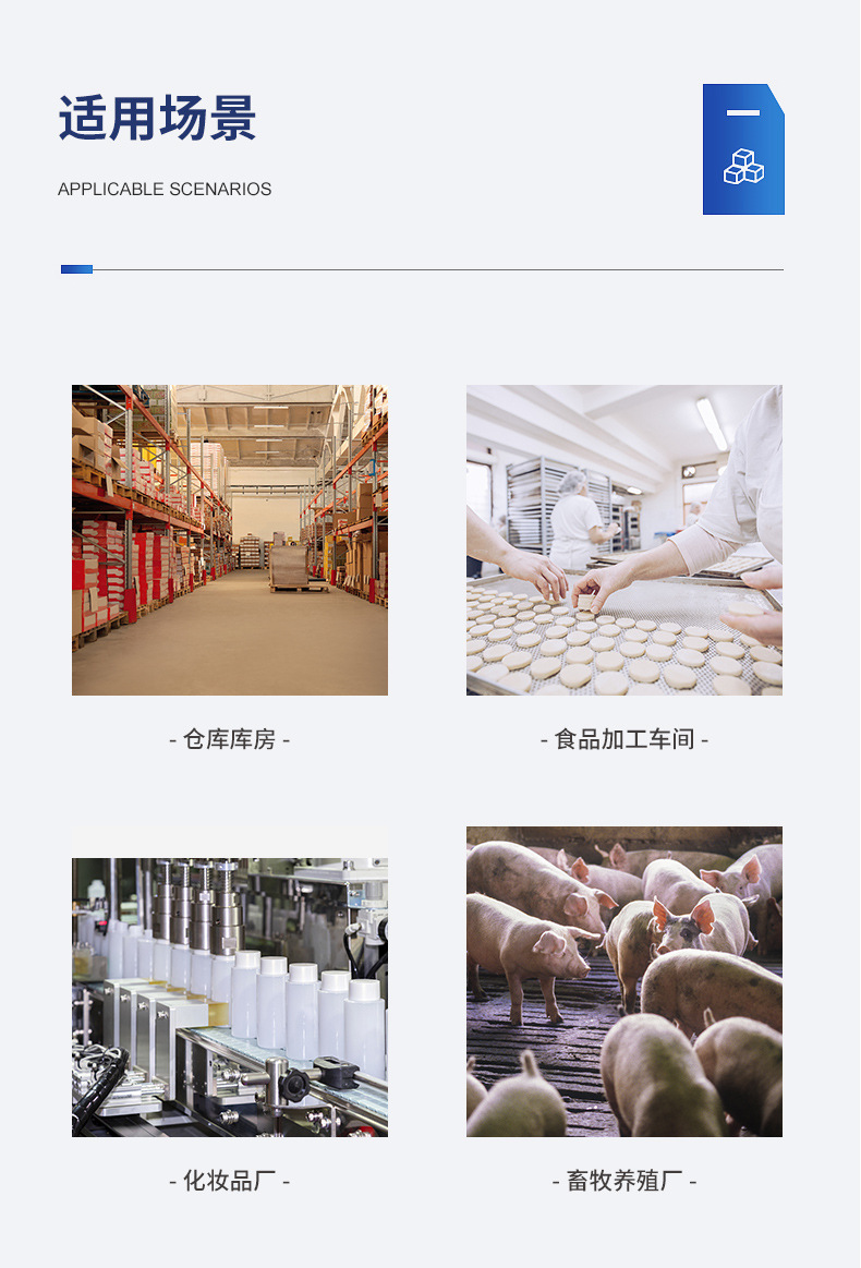 | 适用领域: | 洁净车间、畜牧养殖、大型屠宰车间、酒店、化妆品车间消毒杀菌 |