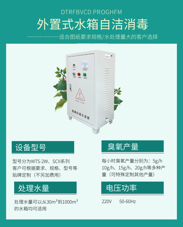 水箱自洁消毒器臭氧杀菌wts-2a内置生活水消防水电解消毒仪